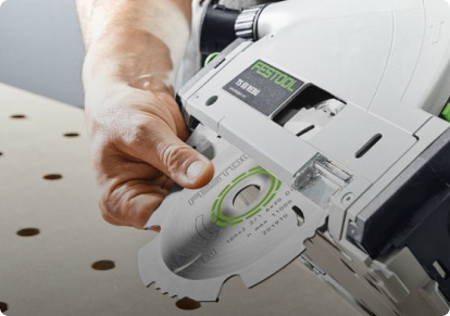 Toutes les scies circulaires portatives du fabricant peuvent bien entendu être utilisées avec les rails de guidage maison, disponibles en différentes longueurs et également en version flexible (enroulables pour un transport facilité).